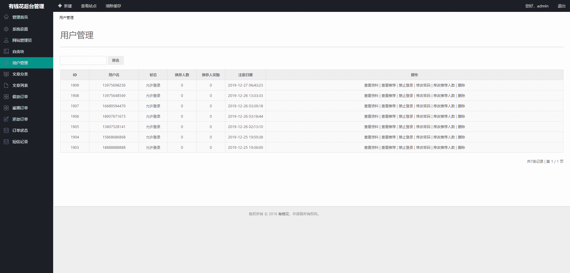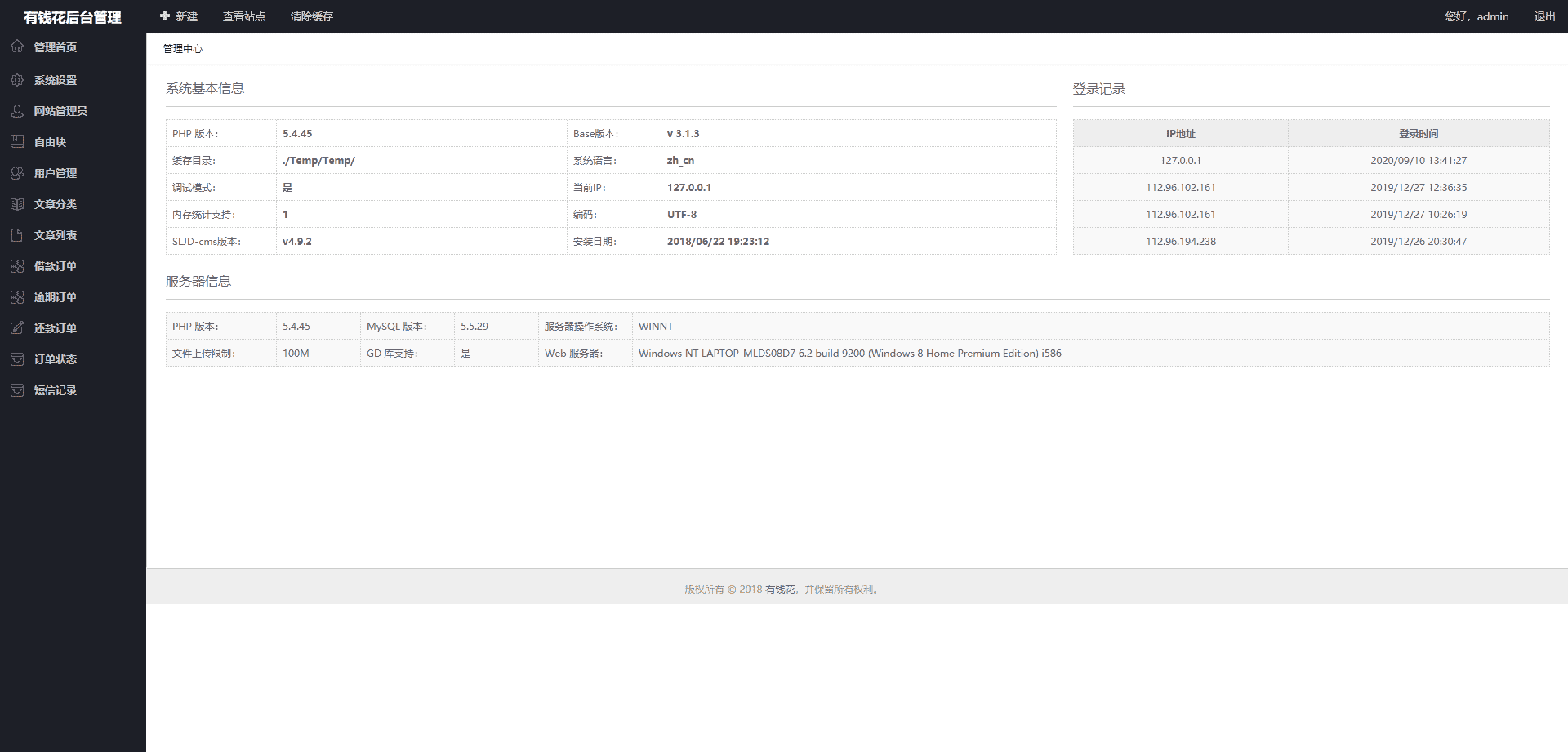 后台账号:admin