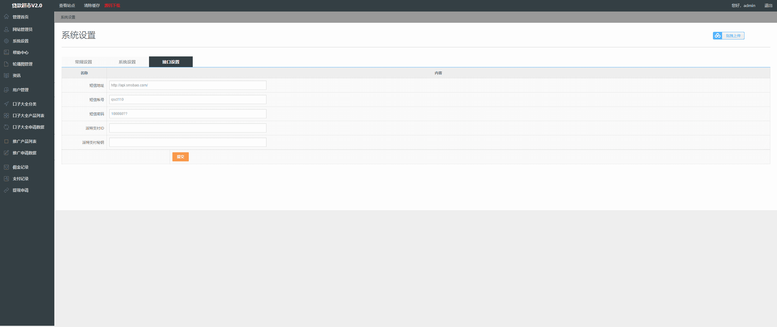 这个骑士贷最近是一款非常火爆的借贷源码,程序自带分销功能和推广,注册后可升级代理之后装潢分享自己的店铺,支持入驻。源码已经测试整理完毕,短信接口支付接口都已经OK,这次对接派特第三方个人免签,无需签约个人账户即可收款,比起之前方便了许多。更换支付无需翻改代码,直接在后台填入ID和秘钥即可。有兴趣的会员朋友自行下载。