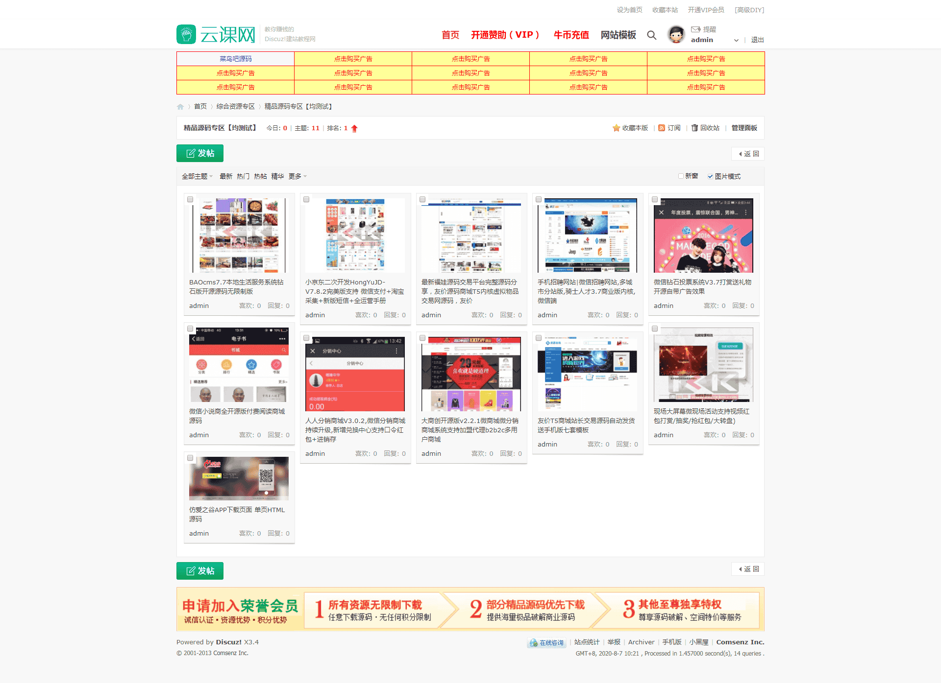 大概测试了一下还可以,如果需要做源码论坛的可以考虑这个,板块模板都已经布局好了,你搭建只需更新资源即可运营了。
