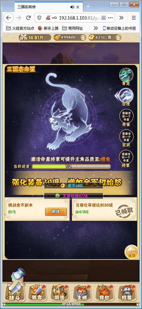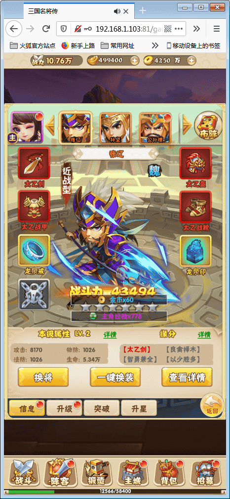 [手游源码] 稀有卡牌手游【小小三国H5】Win一键端+多区+跨服+授权物品后台