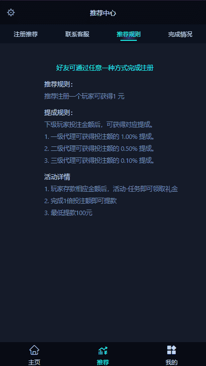 安装搭建说明测试环境:宝塔面板 + Nginx -Tengine2.2.3 + PHP7.3 +Mysql8.0数据库配置文件 Application/database.php设置伪静态规则 / ThinkPHP 运行目录设置 public后台/admin.php 用户:admin 密码:123456PHP需要安装 fileinfo + redis + Swoole4 扩展