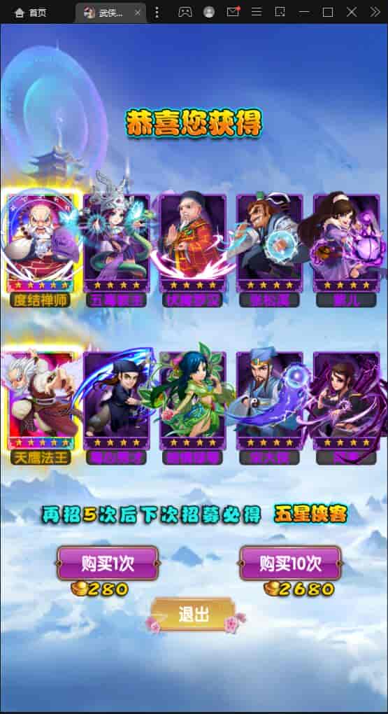 经典卡牌游戏【武侠大宗师翅膀版】11月整理Win一键即玩服务端+GM后台【站长亲测】