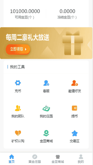 黄金庄园是基于区块链的农场种植游戏,金豆为游戏通行货币。