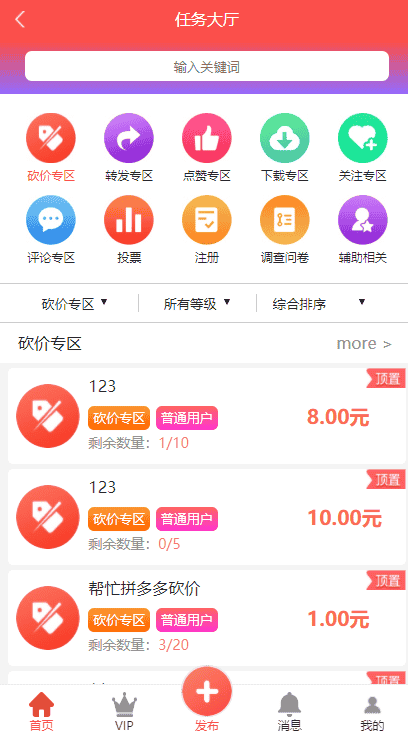 拇指赚任务悬赏平台源码,通过砍价点赞关注投票等任务的赚钱平台源码,平台简单易用,可以提现佣金。