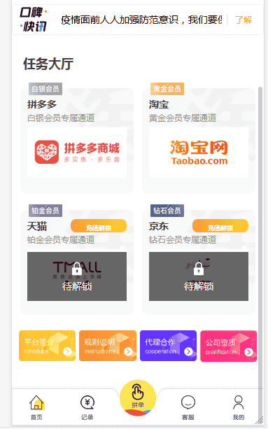 六月三号修复版淘宝天猫京东拼多多抢单系统源码下载,源码自带商城模块,并带有客服系统,支持个人收款,可以封装成app。