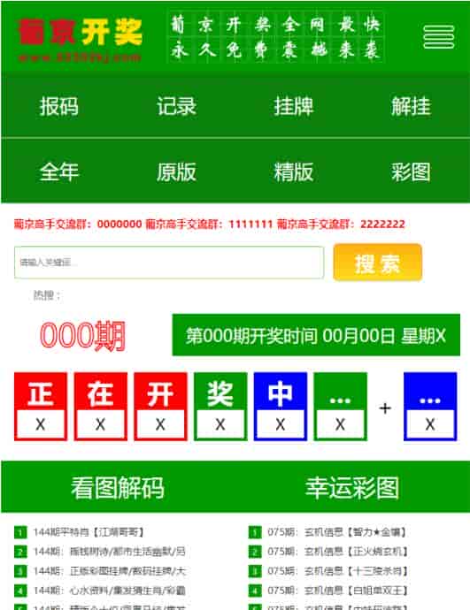 一款六合Cai开-奖直播源码,带有各种计划模式!默认是手机版的模式,当然电脑也是可以打开!织梦内核制作而成!引流的必备神器!