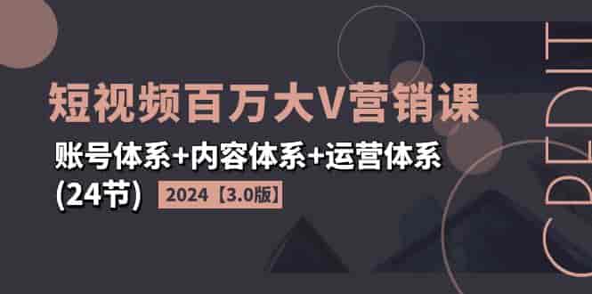 2024短视频·百万大V营销课【3.0版】账号体系+内容体系+运营体系(24节)