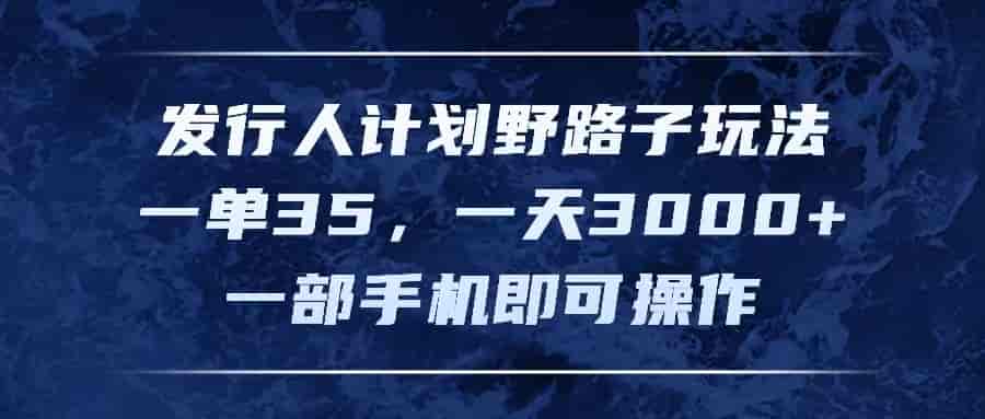 发行人计划野路子玩法,一单35,一天3000+,一部手机即可操作