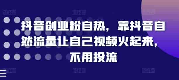 抖音创业粉自热,靠抖音自然流量让自己视频火起来,不用投流