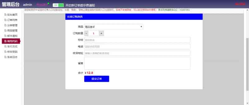 PHP订单系统演示地址:http://www.maodouu.com/