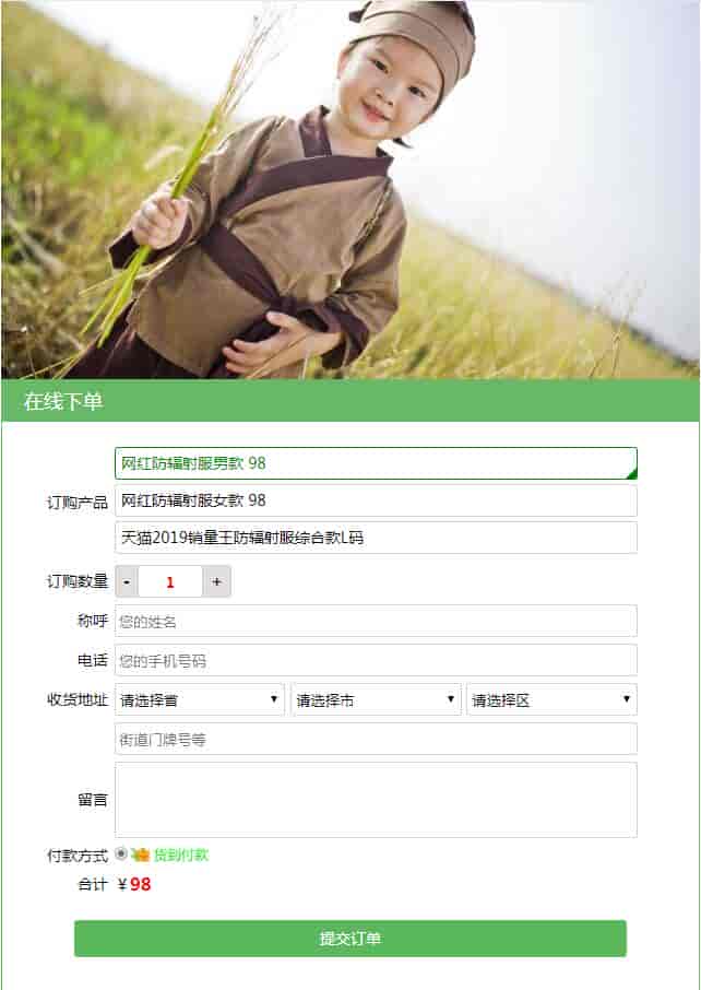 姓名、电话、地址、订购产品及数量、来路IP、来路页面、留言等