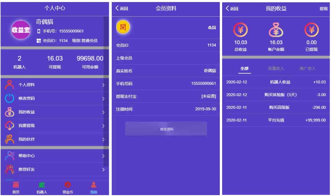 已集成支付、短信、查询借款,支持购买会员、签到,状态短信通知。