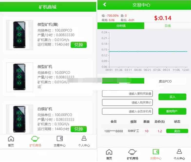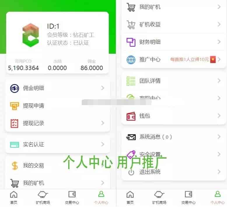 [PHP源码] 挖矿系统源码 可以打包app虚拟币区块链挖矿系统 商城+签到+推广