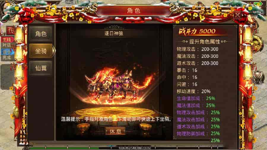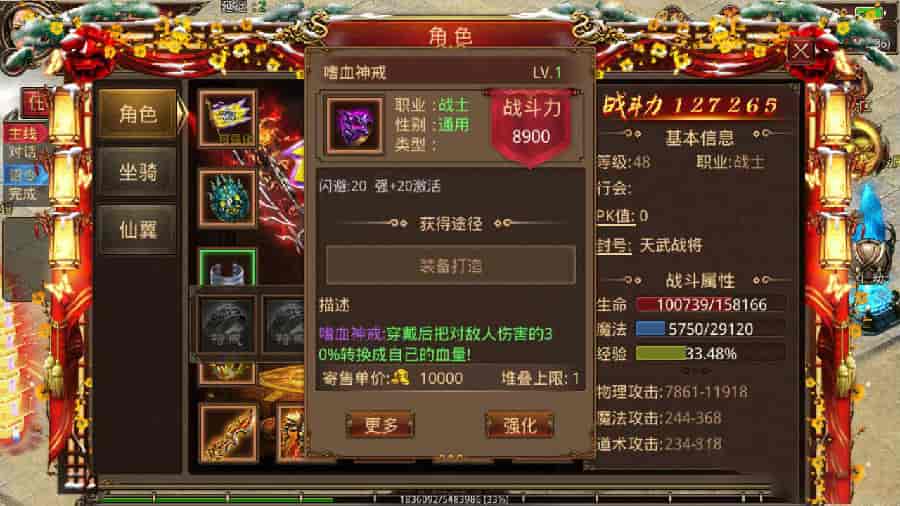 战旗、特戒、坐骑、战骑、盾、假人等功能
