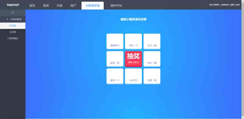 tinkphp1.0贺岁版小程序应用平台系统源码安装说明:直接放入服务器或者空间,访问域名根据安装向导进行安装。