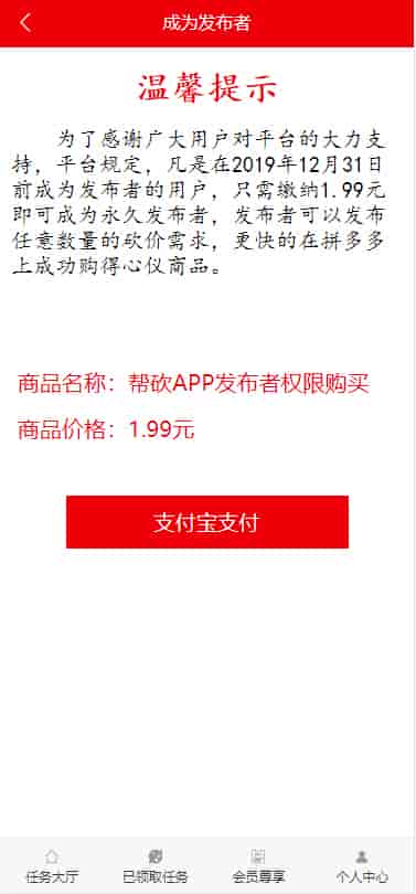 ThinkPHP帮忙砍价任务赚钱源码 可封装APP程序为ThinkPHP3.23框架。发布任务付费开通权限,支持等级购买,不同等级可以设置返佣和领取任务数。支持会员等级购买,三级返佣。