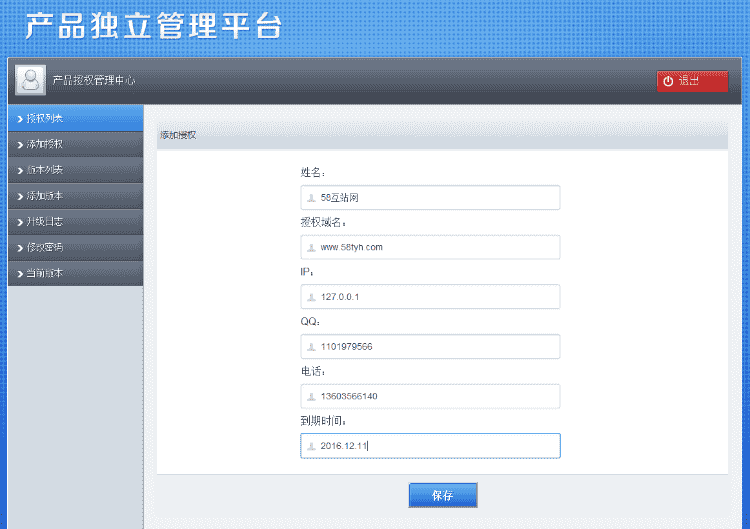 最新授权验证平台2.1,主要修复了前一版本的BUG,增加管理员登录安全码,增加服务器IP+域名双重授权模式,增加用户升级日志 客户升级内容一目了然,随时掌控!2.1优化用户升级过程中不允许截获升级包,完成后自动删除升级包,防止用户拿到升级包。域名+服务器IP授权模式 授权顶级域名后 其他二级域名均可使用。目前几乎可以运用到任何PHP程序上,是你商业产品不可缺少的搭档!微信平台已经完美试验成功!