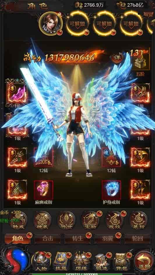 更新:转生40转 羽翼,玉佩,战灵提计丹调整一次100颗上线装备不要装,