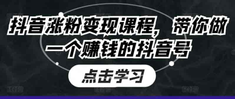 抖音涨粉变现课程,带你做一个赚钱的抖音号