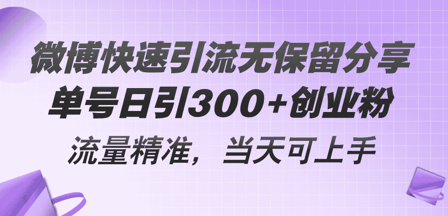 微博快速引流无保留分享,单号日引300+创业粉,流量精准,当天可上手