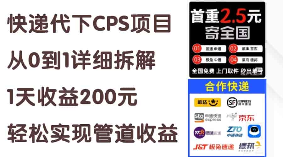 快递代下CPS项目从0到1详细拆解,1天收益保底200元,轻松实现管道收益