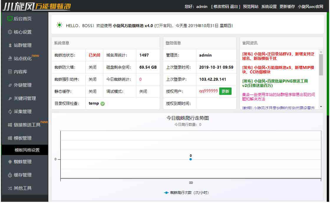 小旋风蜘蛛池站群系统源码X4版本(原小霸王蜘蛛池),繁体+SSL+熊掌自推送+转码蜘蛛池站群网站快排