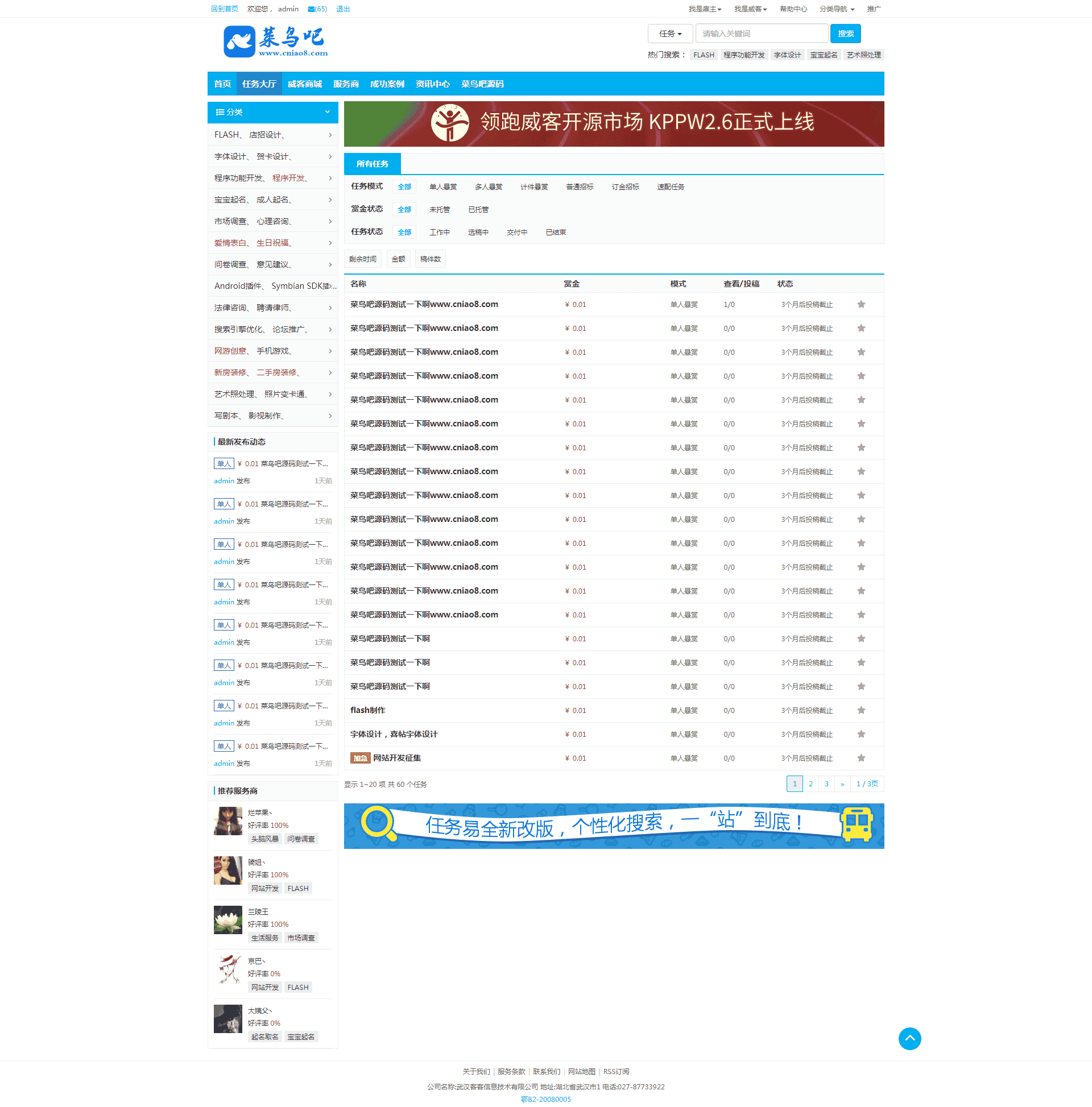 12月最新KPPW威客系统V2.6商业授权版 PC+手机版 带支付接口+多模板选择自适应手机版