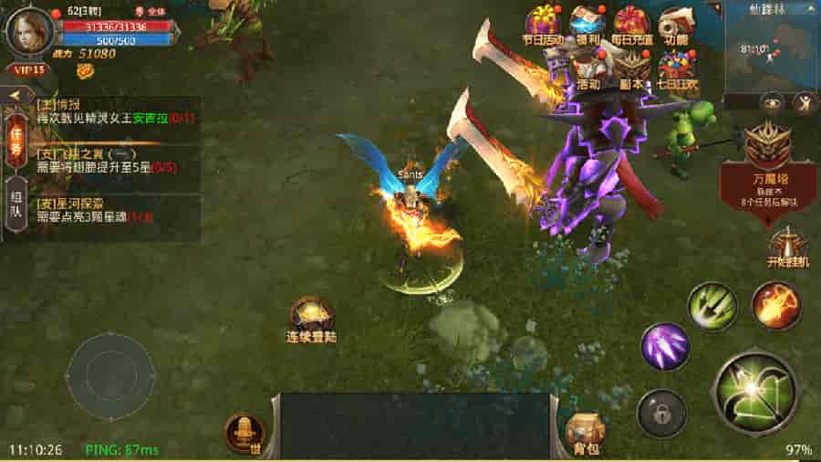 强大的勇士将浴火而生,拿起自身的手机, 继续在激烈的战斗中前行吧,用战争拯救这充满黑暗与痛苦的土地。