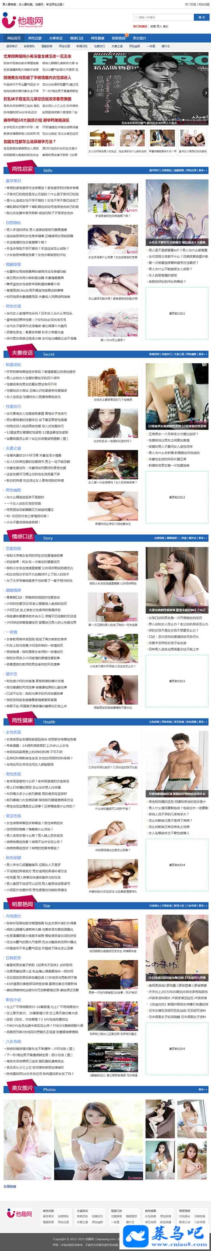 他趣网为您提供男女两性健康性生活常识,包括成人情趣用品玩法,夫妻两性技巧及性爱保健知识.关注两性情感口述,一夜情,婚外恋等私密话题,致力于提升夫妻男女两性生活的乐趣.