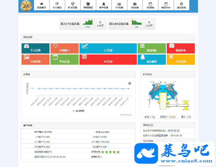 最新ACCOIN数字金融整站源码 虚拟币交易 自动挖矿网站源码下载 中英韩三语 完美无错运营版