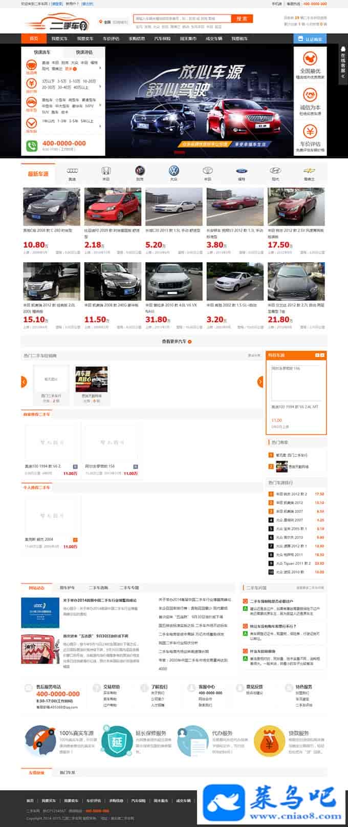 锐车系统是一套二手车网站的高端解决方案,基于PHP+MYSQL开发,超量静态页面布署,DIV+CSS进行设计,操作简便,负载能力强,模板与程序分离,扩展性架构。全新设计平台界面、功能,突出行业特色。网站采用了多个动态模块,能够自主、独立的完成网站中大多数内容的更新。网站内容及结构框架设计上力求体现简捷性与人性化的思想,在功能设计上配合企业需求设计,充分体现企业的对外形象,在框架编排、色彩搭配都做到恰到好处,使整个网站在保证功能的前提下给使用者带来良好的视觉享受和精神愉悦感。