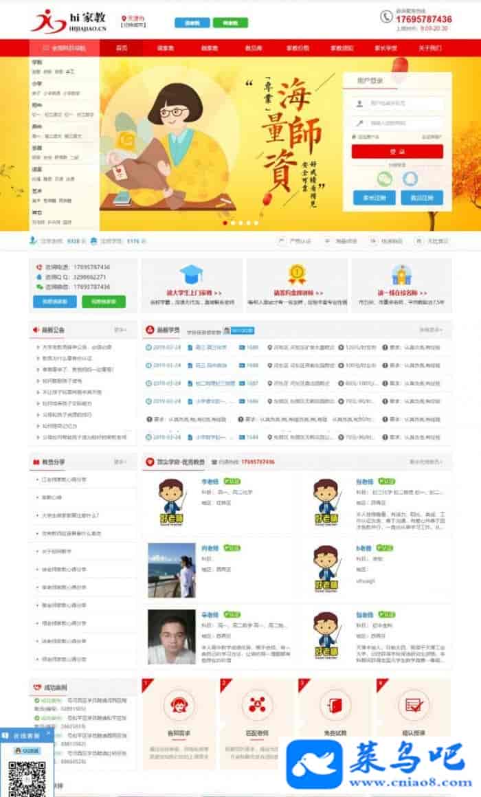Thinkphp内核家教平台网站源码 带手机站,适合做教育服务网站平台本源码采用PHP语言开发,内核采用TP框架也就是(thinkphp,版本为TP3.2)。前端采用Bootstrap框架,自适应屏幕设备。