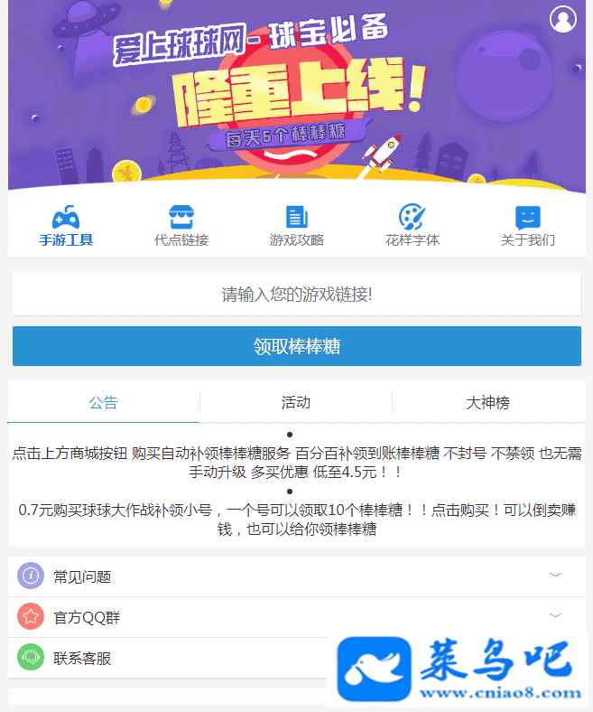 源码功能:球球棒棒糖链接代点,更多功能自己体验