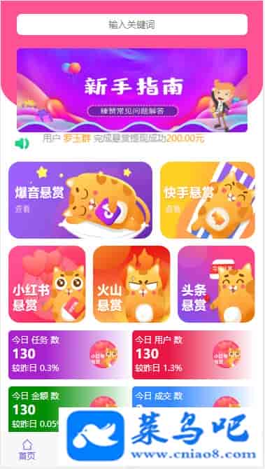 其余功能无任何差异,我们在官方基础之上增加了会员邮箱注册,为站长免除短信费困扰,人人可用,我们手机号注册已默认内嵌一个聚合短信,暂时都能免费使用。单用户新增除快手、抖音外 ,新增自媒体类任务悬赏。