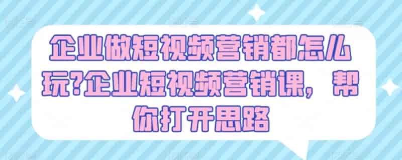 企业做短视频营销都怎么玩?企业短视频营销课,帮你打开思路