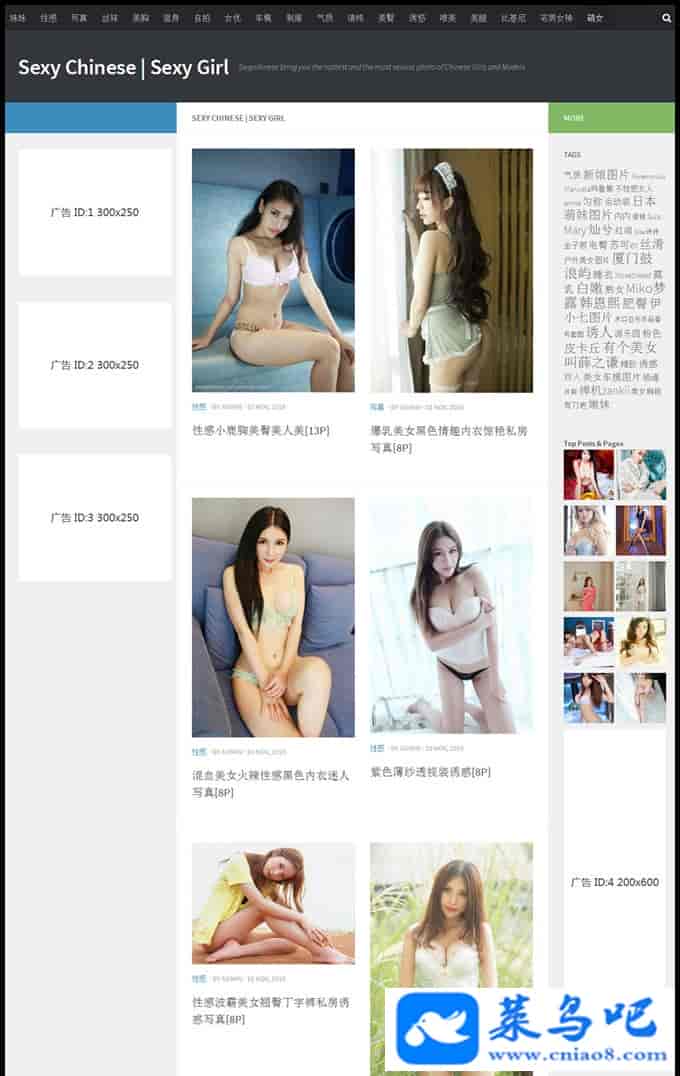 帝国cms仿《Sexychinese》美女图片站源码,全站生成html静态文件,无论是打开速度和整站承载量,都是比较出色的一套程序,分享给大家了,有喜欢的拿去做个图片站,可以吸引一些流量的,做百度联盟还是不错的,佣金相对来说比较高!