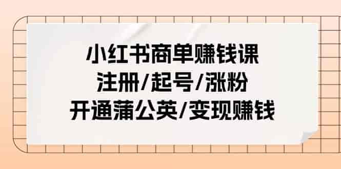 小红书商单赚钱课:注册/起号/涨粉/开通蒲公英/变现赚钱(25节课)