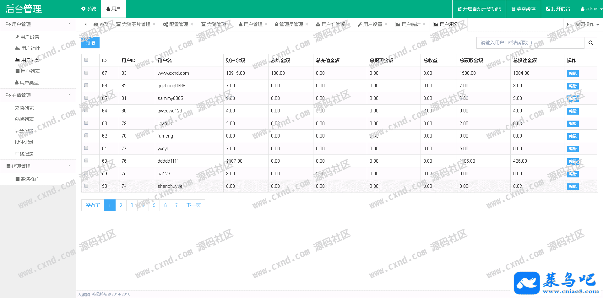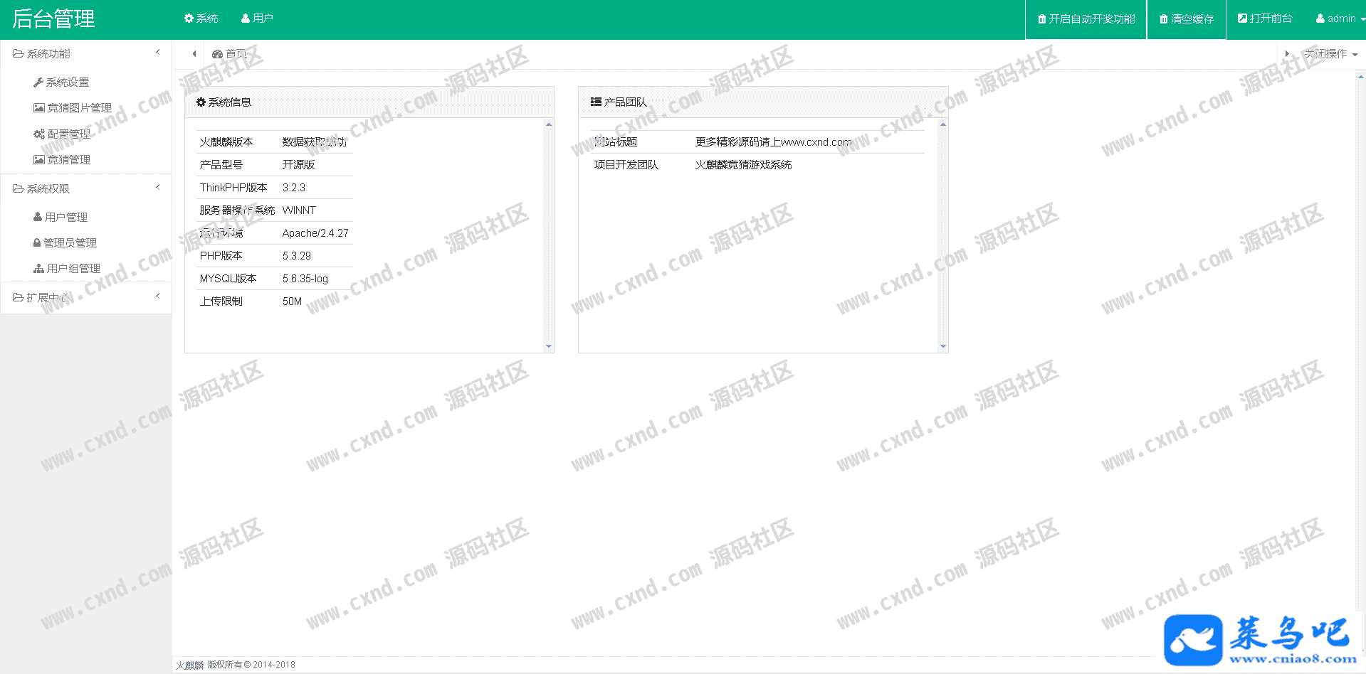 后台账号:admin 后台密码:www.cxnd.com