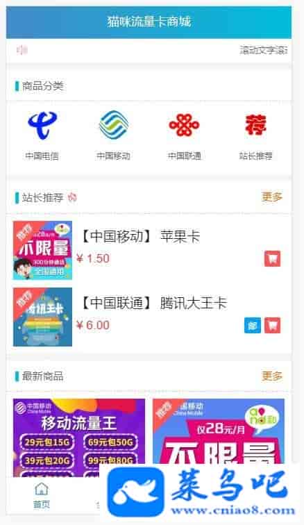 主要针对实物卡商城式进行开发,无需注册登录即可看到网站内的商品和价格,进行付款购买,让客户能更快速的找到自己所需要的商品!