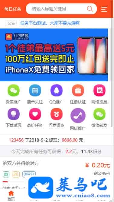 1.手机任务面,一个手机版的任务需要,支持雇主入住发布任务,用户是雇主也是做任务可以自己发任务,做任务。