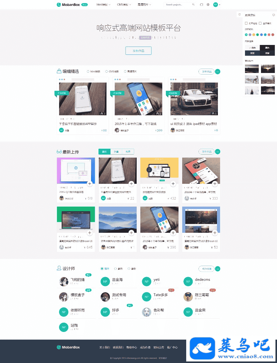 最新Mobanbox响应式高端网站模板平台系统源码,PHP图库素材响应式网站交易系统源码,设计完美响应式,两种模式,打开边栏模式和盒子模式,8种网站颜色 四种风格颜色选择 还可在网站选背景图片,带分成系统充值个人中心等功能!
