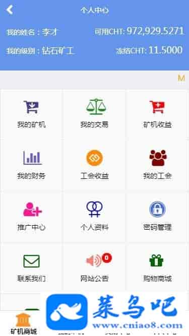 钻石矿工:直推100 团队总人数:5000 公会算力:10000G(或1000台超级矿机) 交易手续费:5% 可拥有算力:300G 赠送矿机:超级矿机*5 自动开启工会管理功能