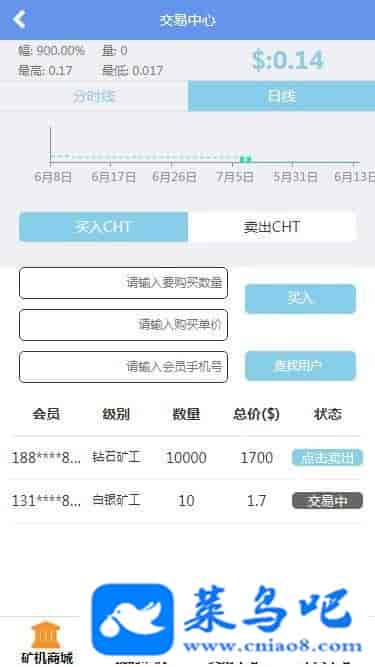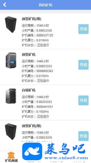白铁矿工:直推:0人 团队总人数:1人 交易手续费:20% 可拥有算力:80G 赠送矿机:mini矿机*3