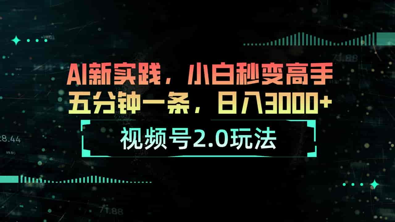 视频号2.0玩法 AI新实践,小白秒变高手五分钟一条,日入3000+