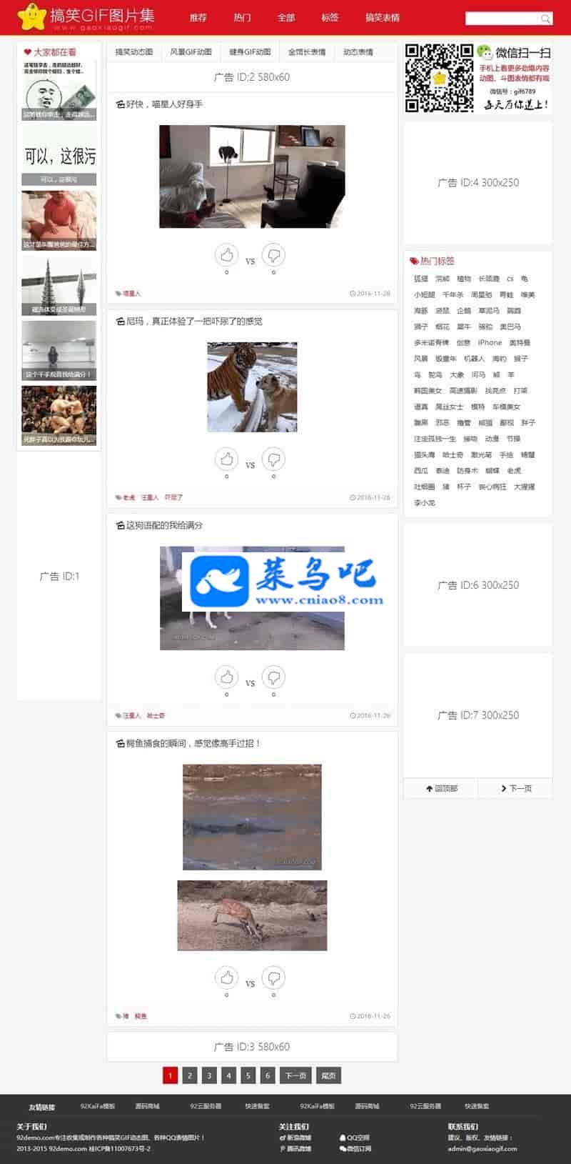 帝国CMS内核92kaifa《搞笑GIF》动画图片笑话网源码 带手机版,模板精美大方,内附安装说明。特殊功能:
