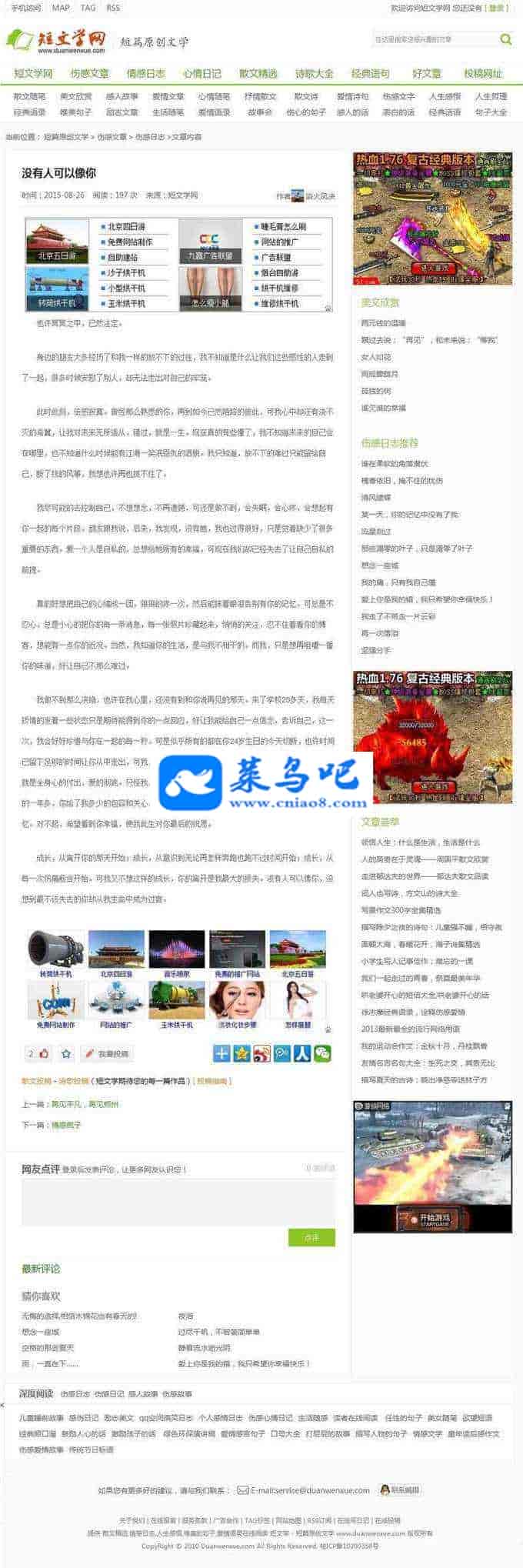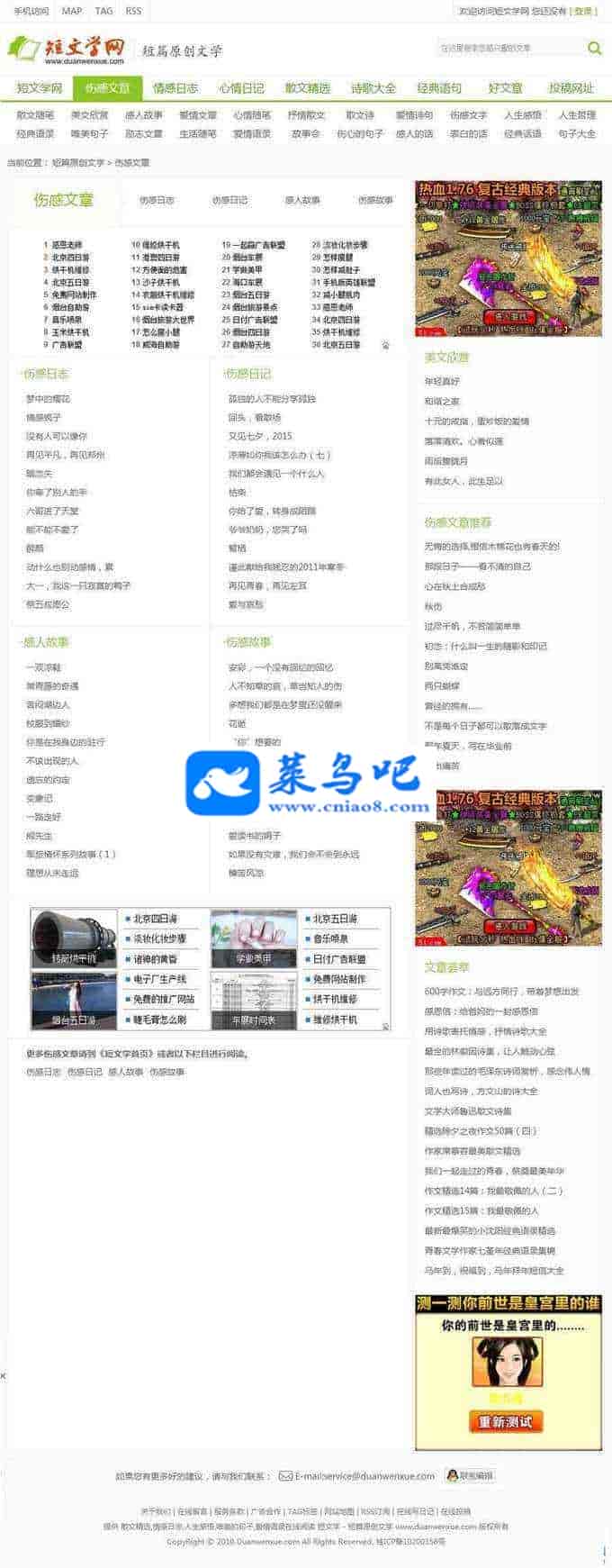 适用范围:文学网源码,情感网源码,情感文学源码,短文学网源码,文章门户源码