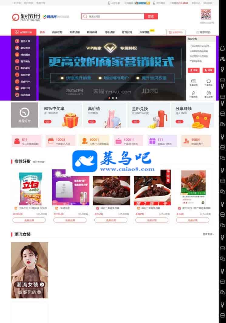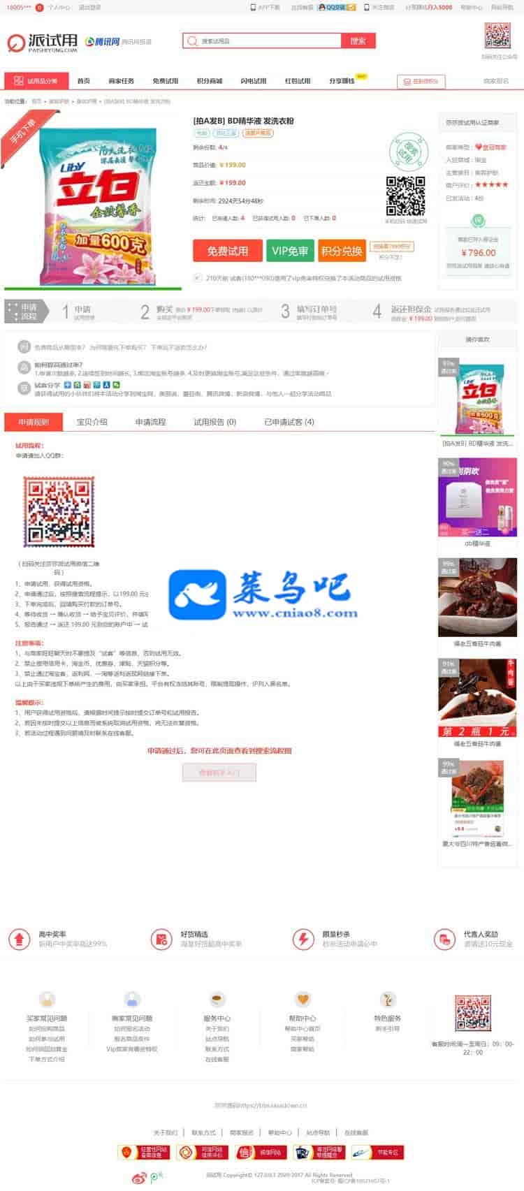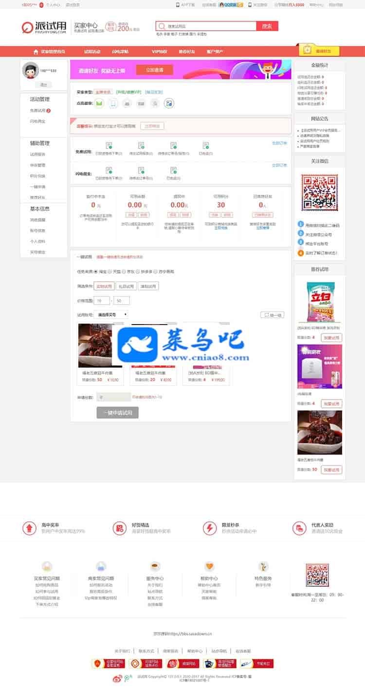 ThinkPHP仿每推推51领啦试客系统源码 PC+WAP+APP原生代码 自带5套精美模板ThinkPHP内核上制作而成,是全国领先的免费试用网站!程序全开源无加密!带有wap手机端,APP源码,已修复实名认证联网接口,而且带有安装教程。程序升级到最新20190610_4.5.1版。