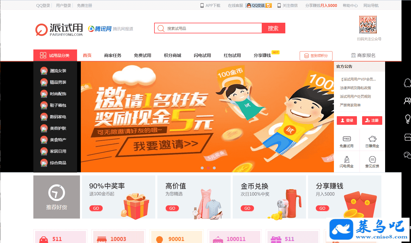 网友自购分享给本站的一款试客联盟免费试用源码,Tinkphp内核上制作而成,是全国领先的免费试用网站,深得试客信赖的免费试用中心网!