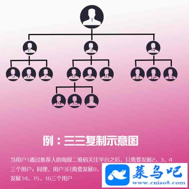 4.不要拿我的系统跟人比价格,你问问别人的系统有没有新加功能;三三复制直销系统,颠覆传统传统直销管理模式,采取三级分销的返利政策,让每个顾客都变成你的销售员,让消费者、经营者相互间层层受益!商城刚上线3天,就发展了4000分销商,产生了100万流水。现在隆重力荐给各位老板。三三复制直销系统双轨升级版一、三三复制升级模式怎么玩?有什么特点?三三复制直销系统是目前市场上用的最多的直销管理系统,到底什么是三三复制直销系统呢?怎么玩?三三复制直销系统严格讲也是矩阵制度一种,是双轨制度的改良,是目前最火爆的微信营销玩法。