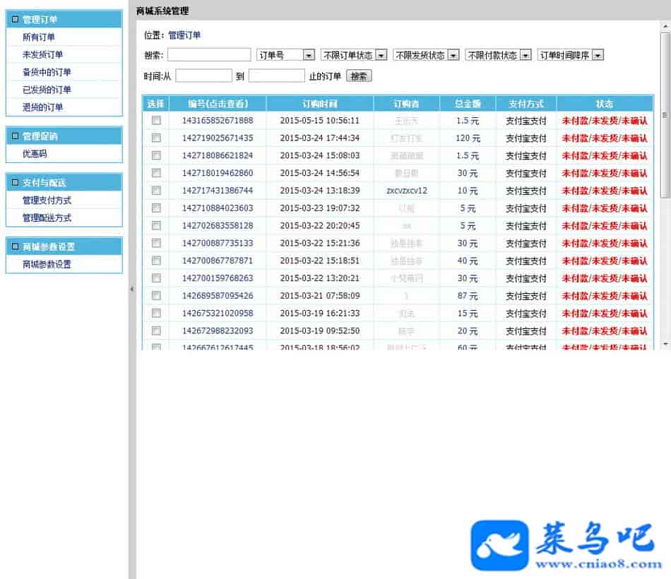 20171101最后一次修复细节!20151216修复搜索不到信息以后无法自动跳转的问题!20151107修复首页链接部分错误!修复顶部付款按钮连接,并后台可配置!2014-05-12全面更新,更换新的安装方案,去除所有无用代码,修复官方文件!模板修正若干处!